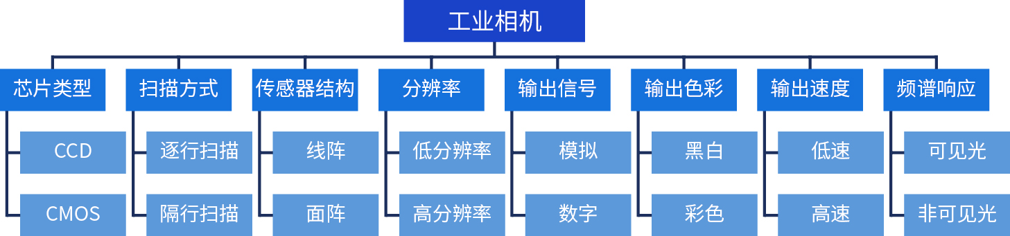 藍(lán)洋智能科技在機(jī)器視覺項(xiàng)目中為企業(yè)精選主流高品質(zhì)工業(yè)相機(jī)及鏡頭,為生產(chǎn)流程中的質(zhì)檢環(huán)節(jié)提供強(qiáng)大的硬件支持。工業(yè)相機(jī)作為機(jī)器視覺的核心部件,其工作原理是通過光電探測(cè)器或圖像傳感器將外界光信號(hào)轉(zhuǎn)變成可被計(jì)算機(jī)處理的電信號(hào),實(shí)現(xiàn)目標(biāo)圖像信息的采集。工業(yè)相機(jī)按照不同的指標(biāo)有諸多分類方式,選擇合適的工業(yè)相機(jī)是機(jī)器視覺系統(tǒng)設(shè)計(jì)中的重要環(huán)節(jié),不僅直接決定采集圖像的質(zhì)量和速度,同時(shí)也與整個(gè)系統(tǒng)的運(yùn)行模式相關(guān)。